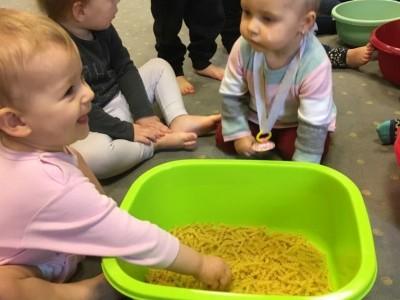 Jeśli nie mogą Państwo przyjść osobiście na zajęcia adaptacyjne bądź pierwszy dzień swojego dziecka w żłobku, warto zapoznać się ze zdjęciami dostępnymi w galerii. Poniekąd przedstawiają one jak wyglądają prowadzone w placówce zajęcia oraz jaka panuje atmosfera w naszym żłobku. Dzieci są zawsze uśmiechnięte, pełne chęci do nauki poprzez zabawę oraz gotowe do podejmowania nowych wyzwań.